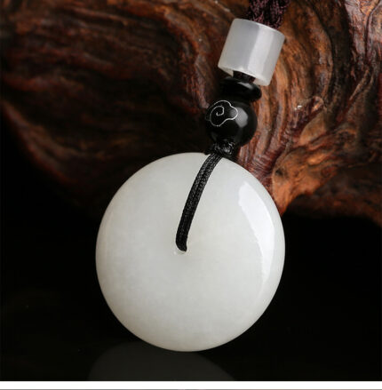 Natural Hetian White Jade Peace Buckle Lucky Pendant