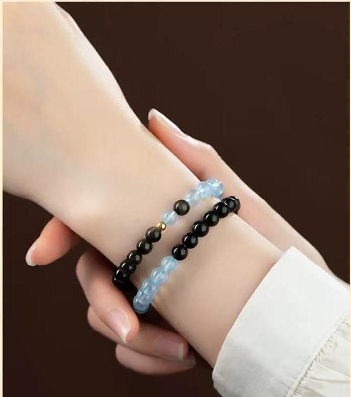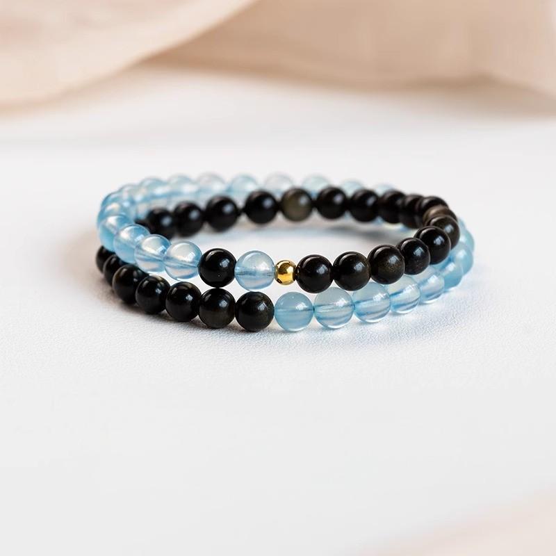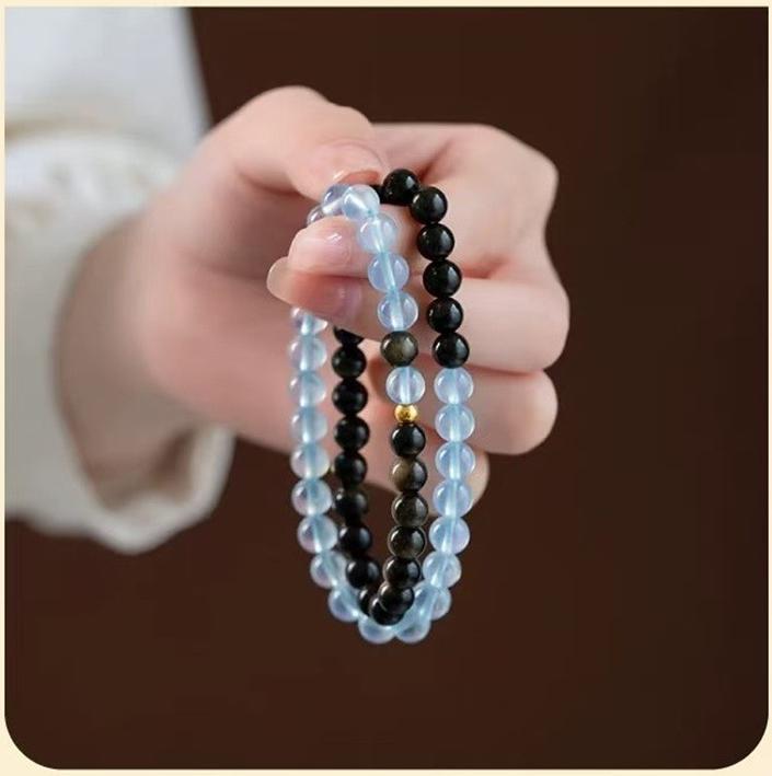 Before resting, hold the bracelet and let go of the day’s stress, letting obsidian and aquamarine restore emotional lightness.