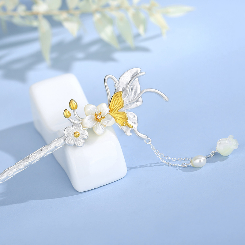 Butterfly in Bloom — Silver Buyao Hairpin | DaoEast