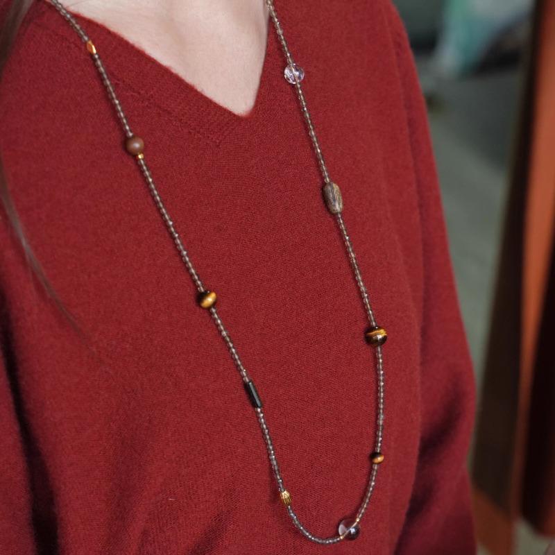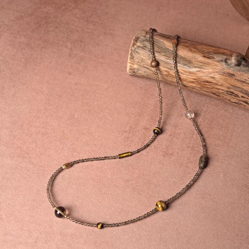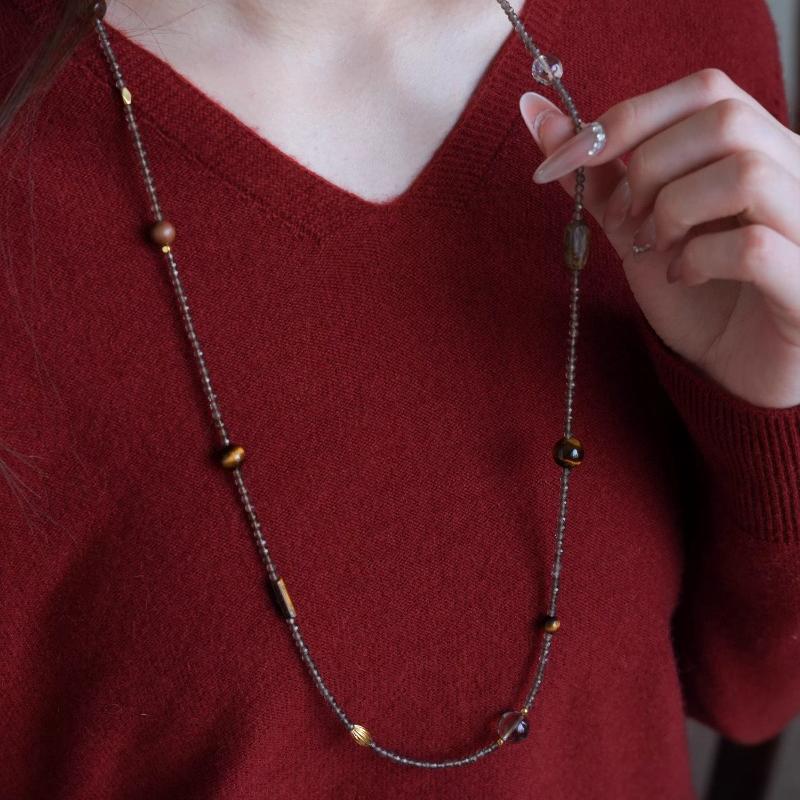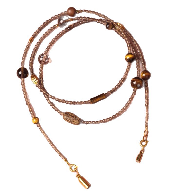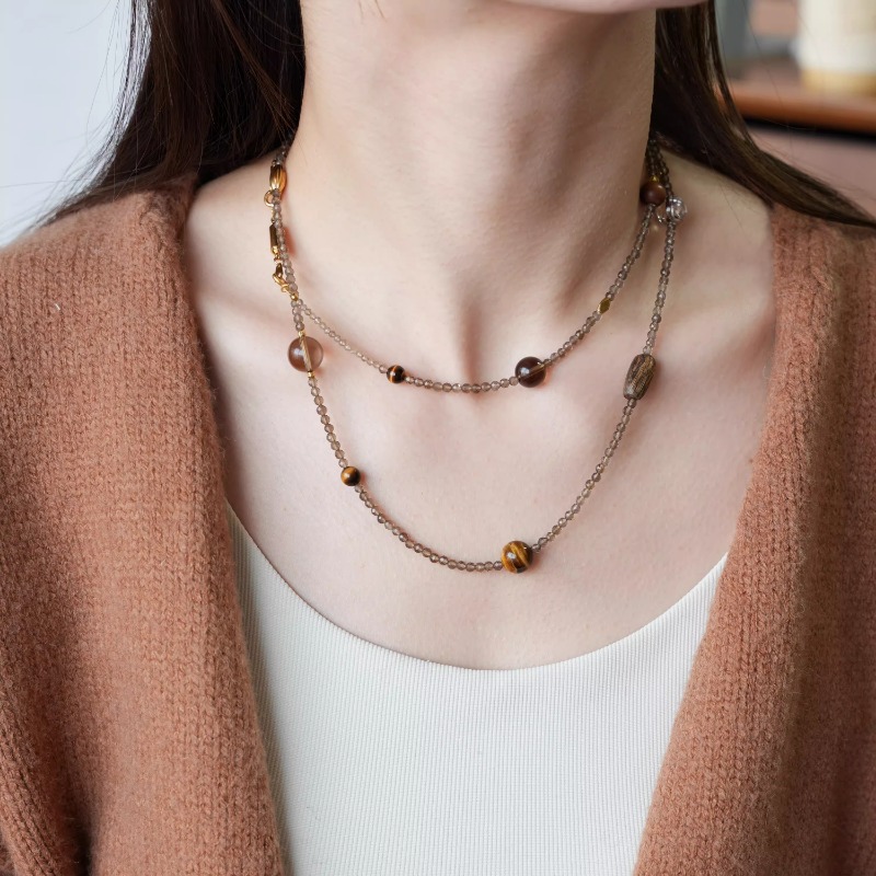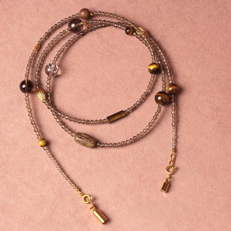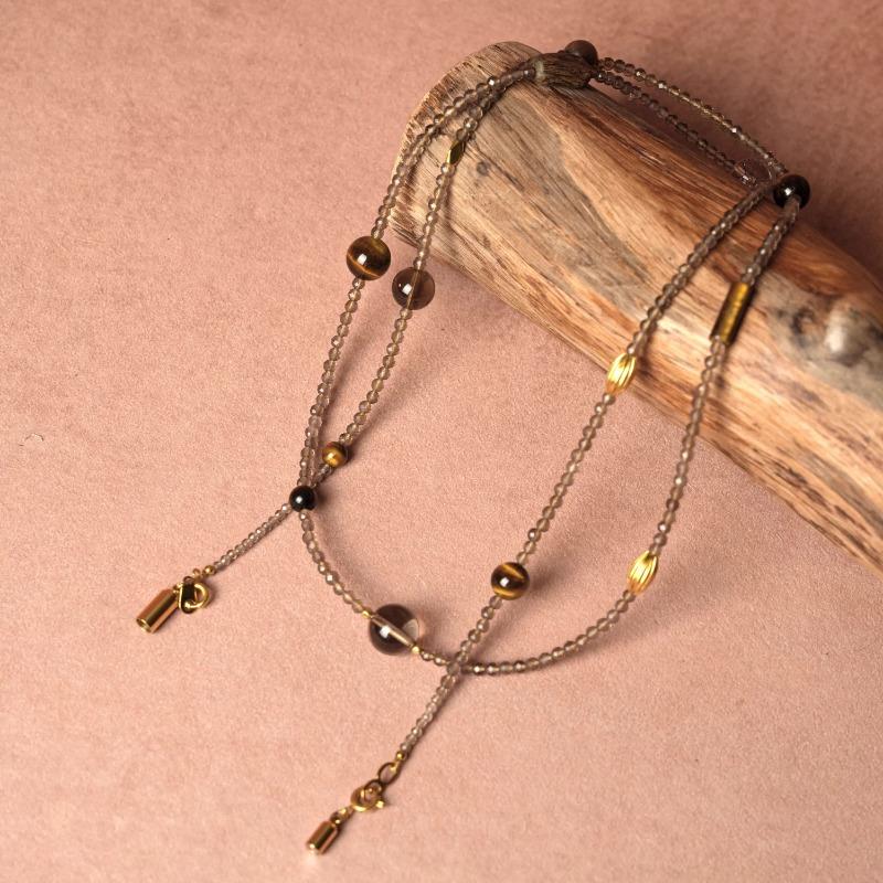 This exquisite dual-purpose jewelry is centered with 3mm natural tiger eye beads as the main core, matched with gentle tea crystal beads as delicate accents. It has an adjustable length of 75-90cm, designed for versatile wear – it can be styled as an elegant long layered necklace or wrapped into a multi-circle bracelet, lightweight and comfortable for all-day wearing. Made of pure natural crystals, it features a low-key and refined texture, suitable for daily matching, and combines practicality with unique emotional value, a must-have versatile accessory for everyday life.