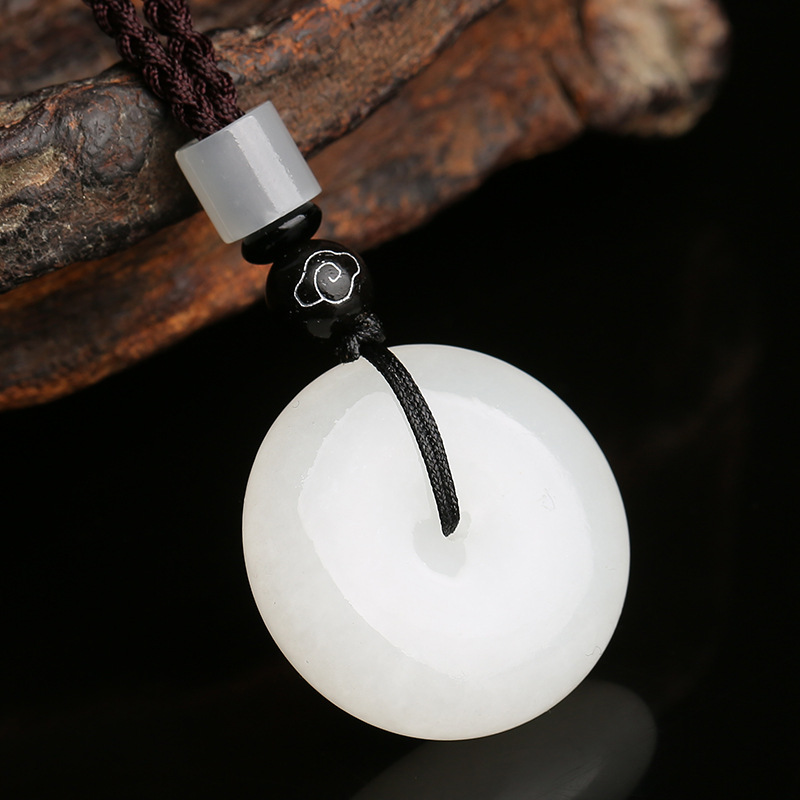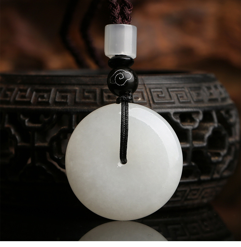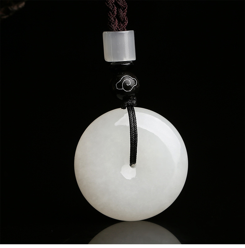 – Style: Classic minimalist hollow round design, versatile unisex white jade pendant, suitable for all matching styles.