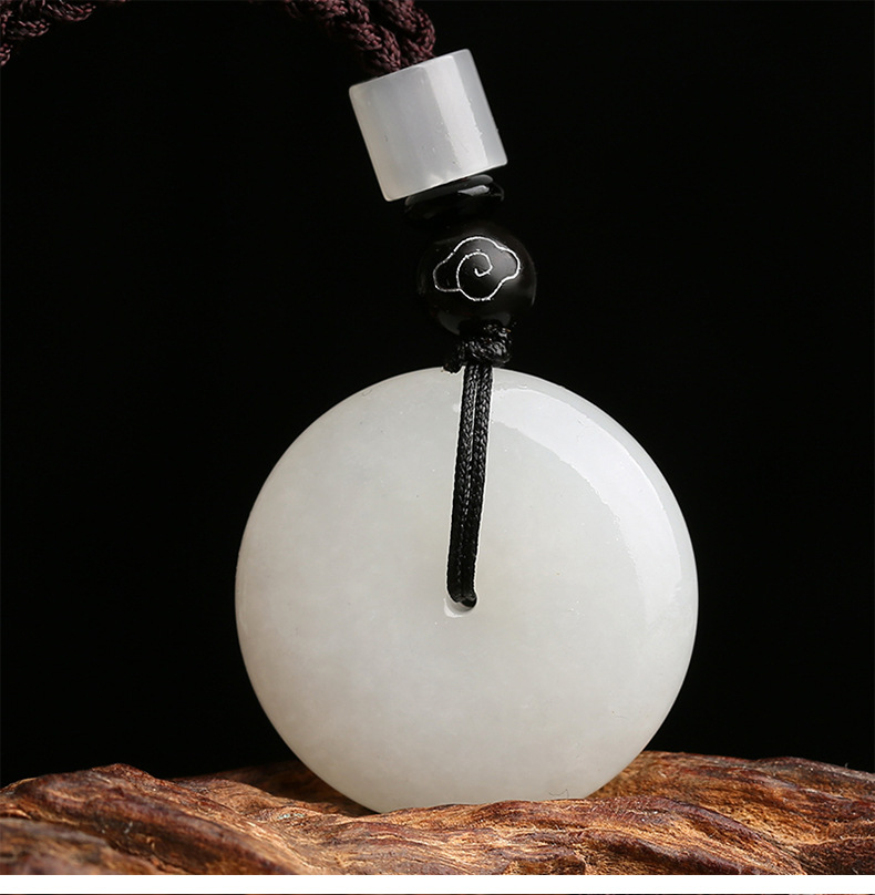 – Size: Two standard sizes – 30mm diameter white Hetian jade peace buckle pendant & 34mm diameter white Hetian jade peace buckle pendant, moderate thickness, comfortable to wear.
