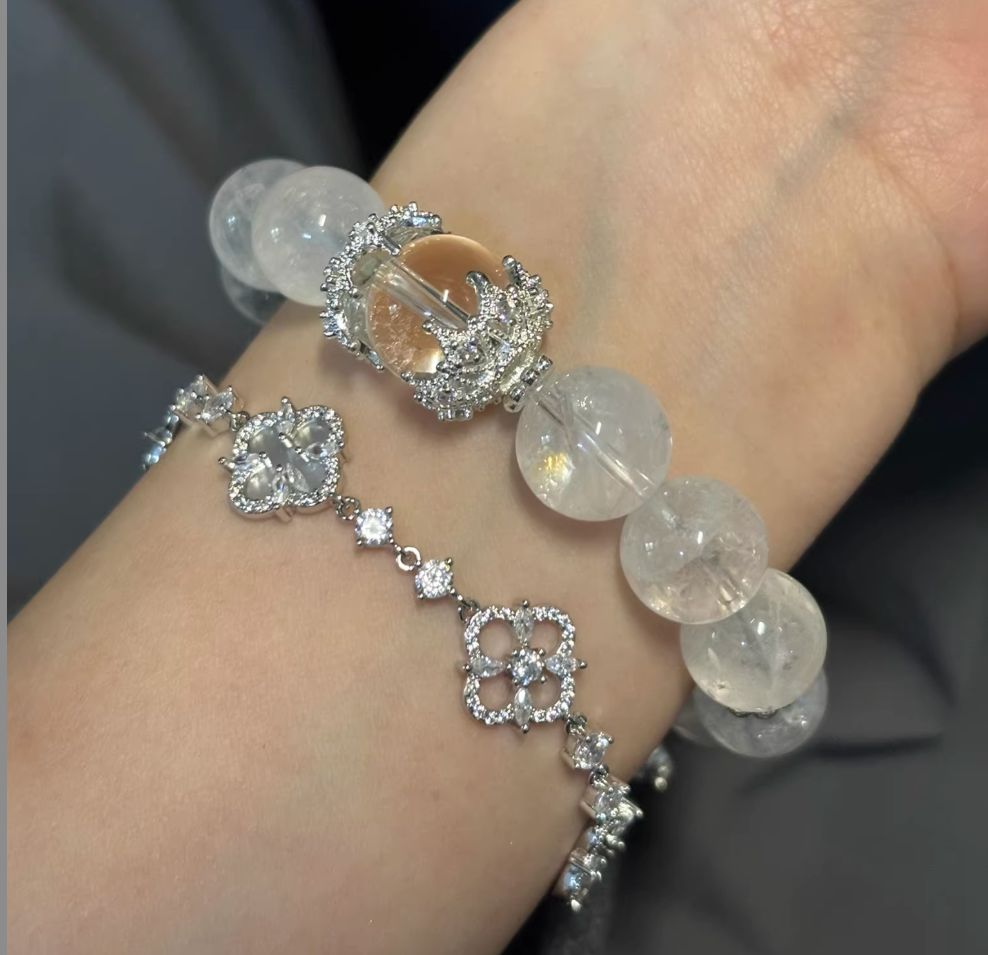 Made of 100% natural white Azeztulite and high-transparency white crystal, without any artificial dyeing, chemical optimization or synthetic treatment. The crystal beads are clear and translucent, with unique natural inclusions, gentle and skin-friendly, no irritation to the wrist, and retain the original texture and energy of natural minerals.