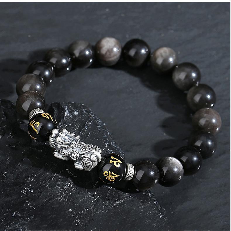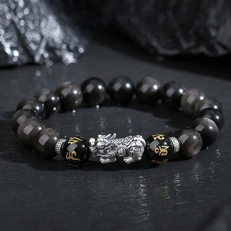 Silver Pixiu Obsidian Bracelet