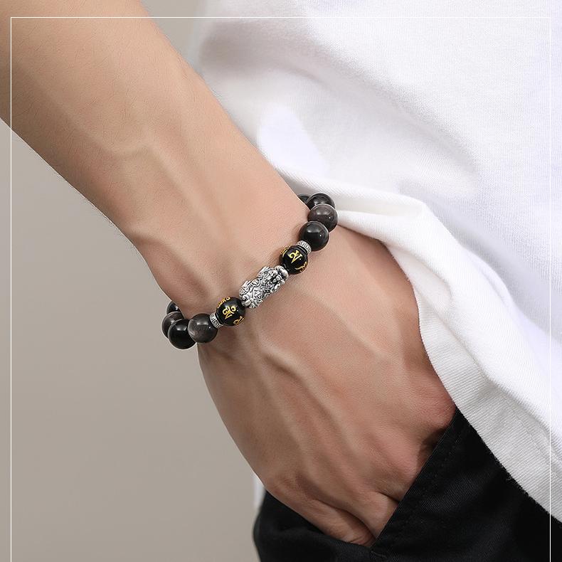 – Main material: Natural obsidian beads, S925 sterling silver Pixiu